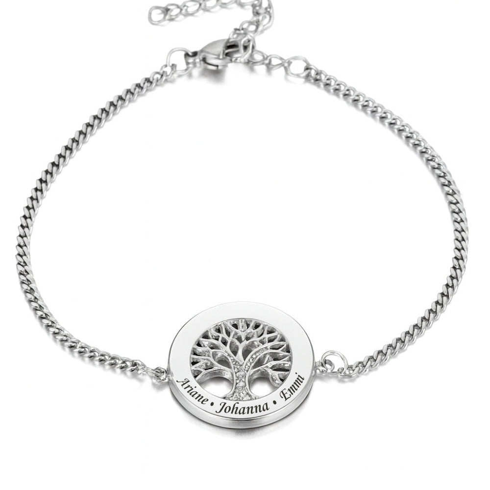 Familienbaum Armband mit Gravur und Zirkonia Steinen